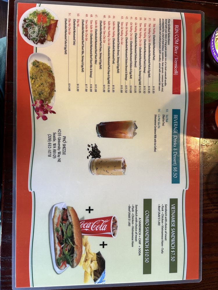 Welcome to Pho Shizzle, a delightful Vietnamese noodle restaurant nestled in the heart of Seattle at 4235 University Way NE. This vibrant eatery specializes in authentic pho, blending traditional flavors with contemporary flair. With a menu that features vegan options and limited vegetarian choices, Pho Shizzle caters to diverse diets while ensuring everyone can savor a delicious bowl of noodles.